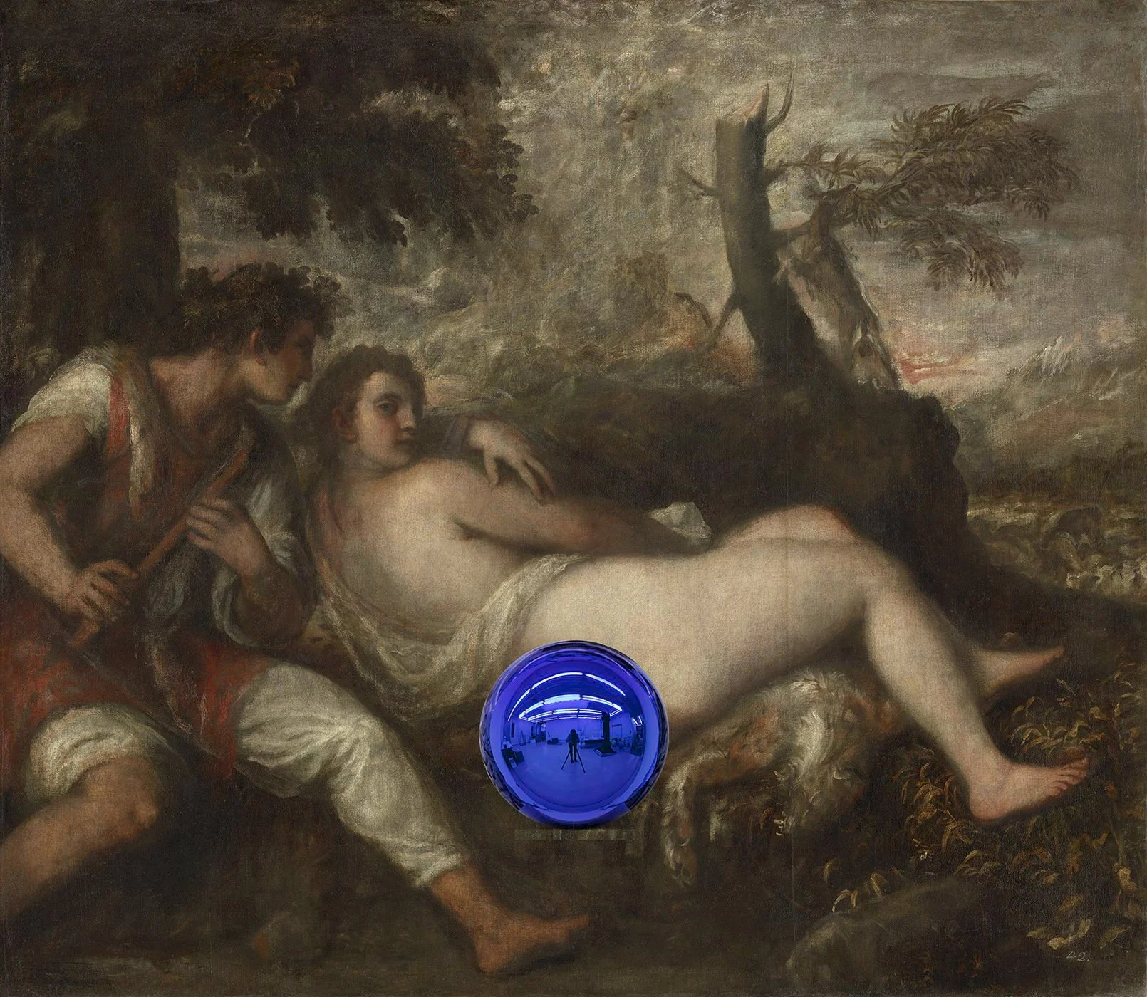 Gazing Ball (Titian Mars, Venus, and Cupid)
