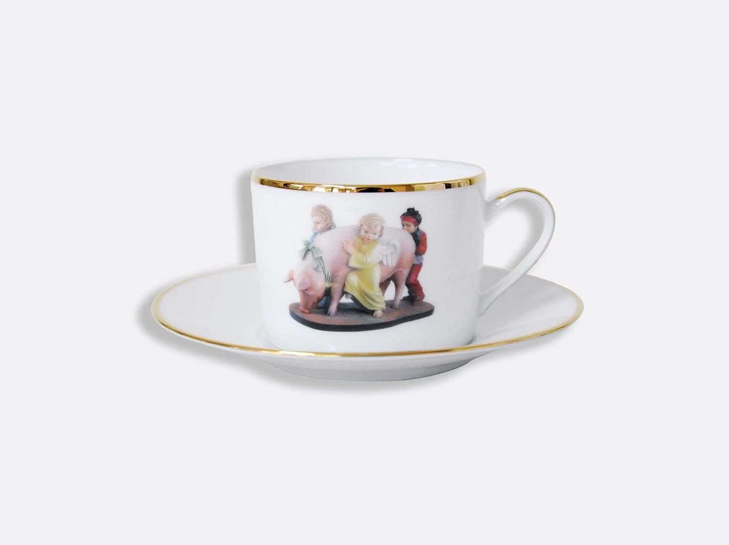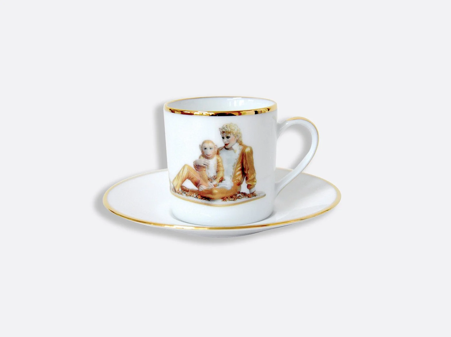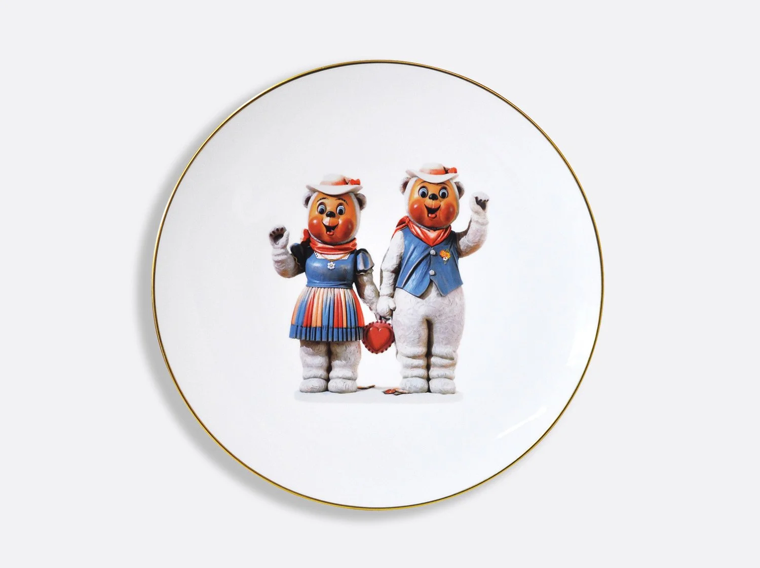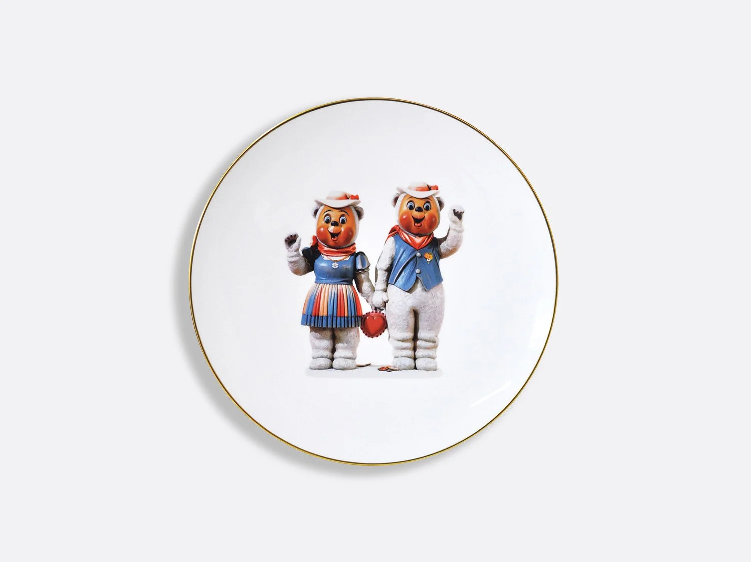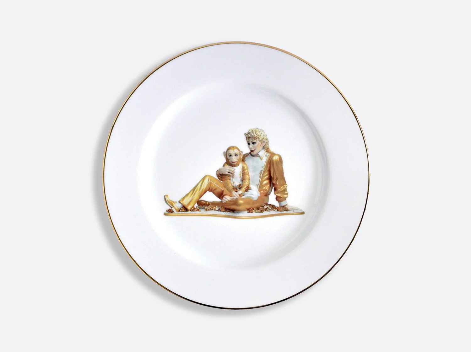 The Ballerinas coupe service plate designed by Jeff Koons, features an image of his sculpture Ballerinas (2010–14) from the iconic Antiquity series. Inspired by a small porcelain figurine of two dancers, the artist transformed the ready-made into a monumental sculpture that stands over eight-feet tall. The artwork communicates beauty, hope, and a sense of affirmation while the reflective surface with its subtle color gradations deal with time and metaphysics.