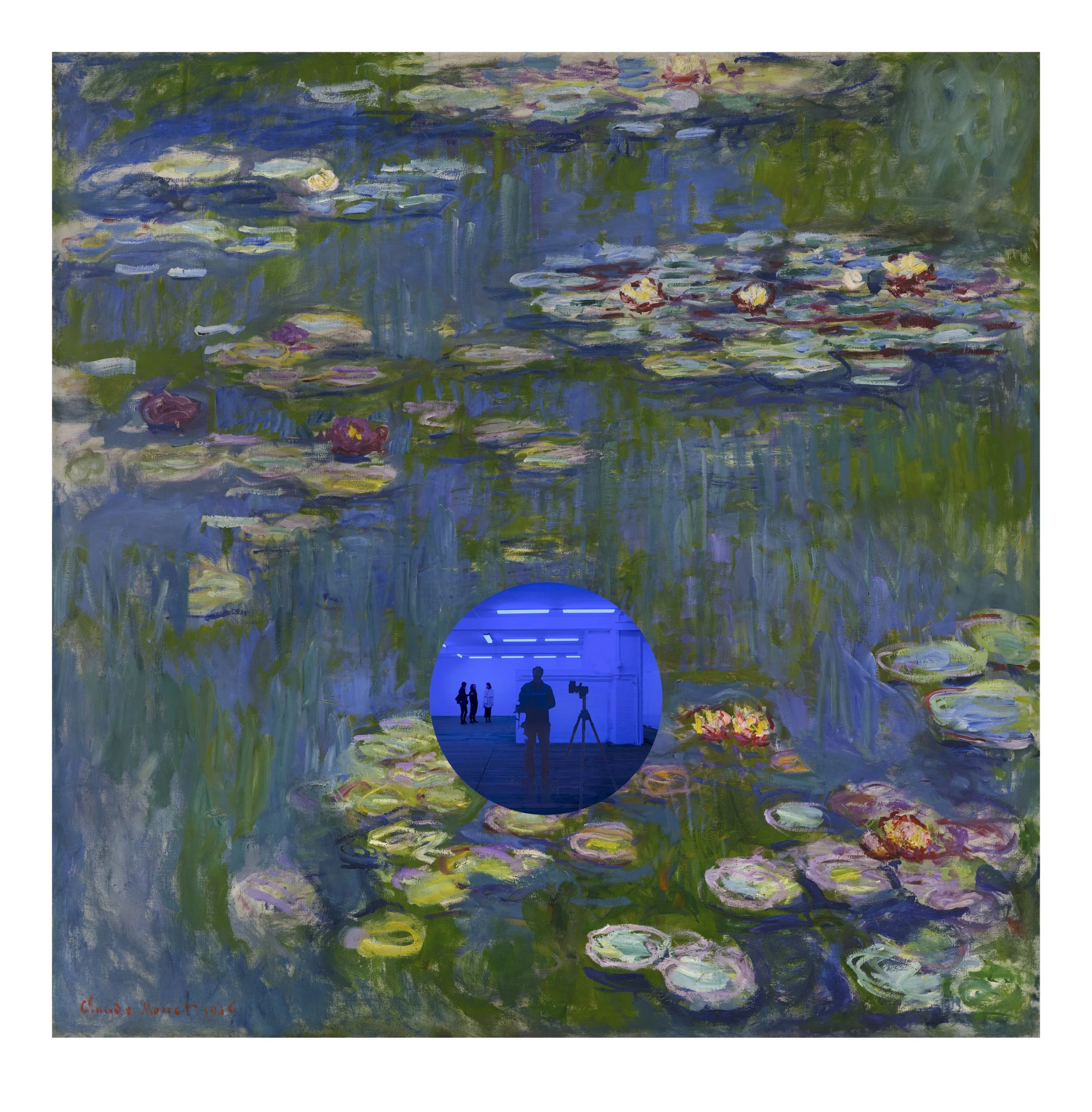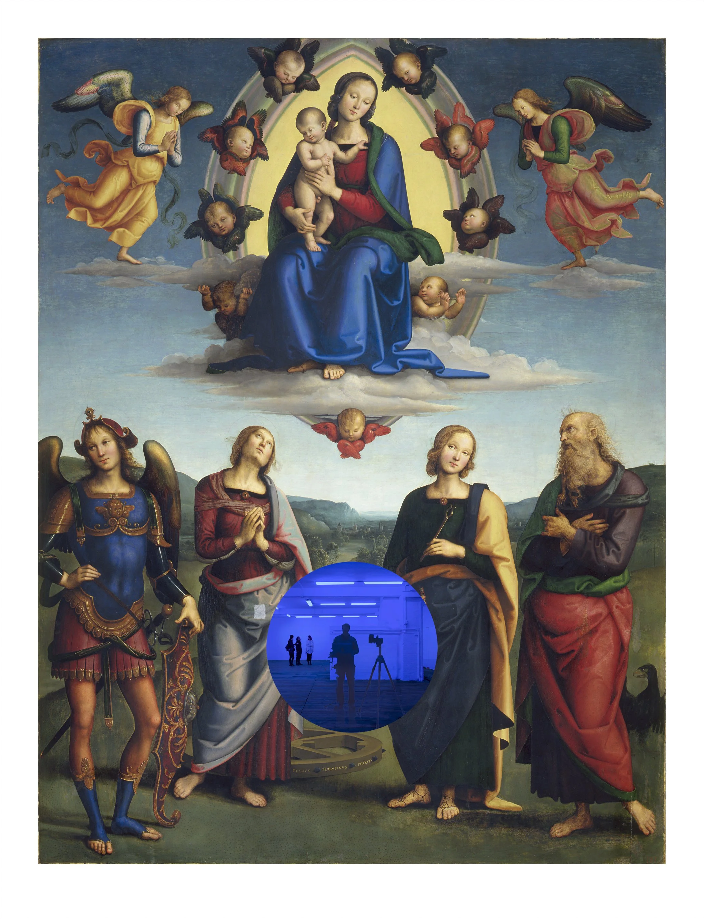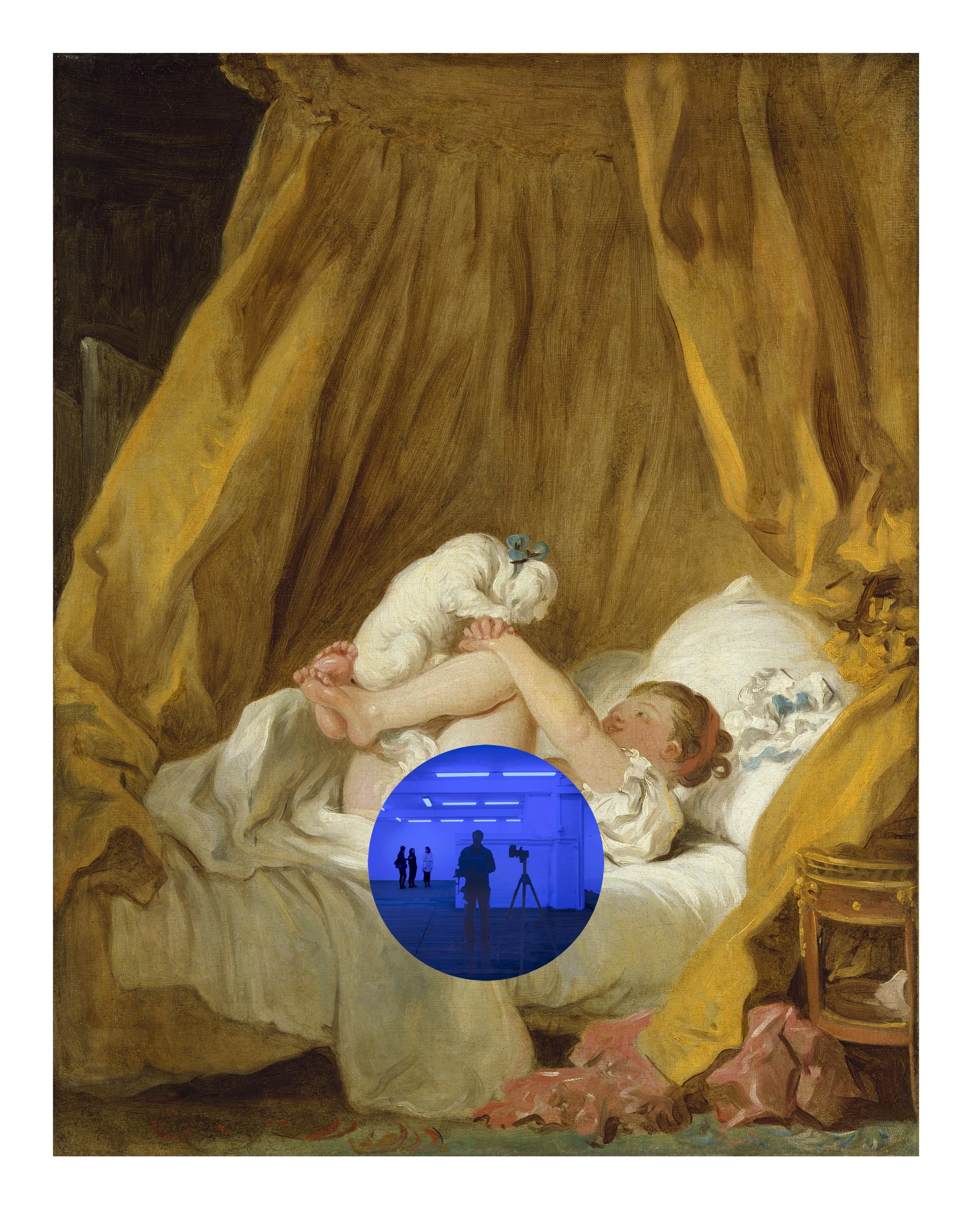 The Gazing Ball series takes as its point of departure the mirrored gazing ball, a popular yard ornament commonly found in the area around the artist’s childhood home in central Pennsylvania. For these editioned Gazing Ball works, Koons worked with the research lab at Corning to develop a custom-poured, optically perfect, one-millimeter thick circle of mirrored cobalt blue glass that is paired with a masterpiece from art history. This juxtaposition of art historical reference with the viewer’s reflection invites a dialogue about the meaning of time and how we transcend it.