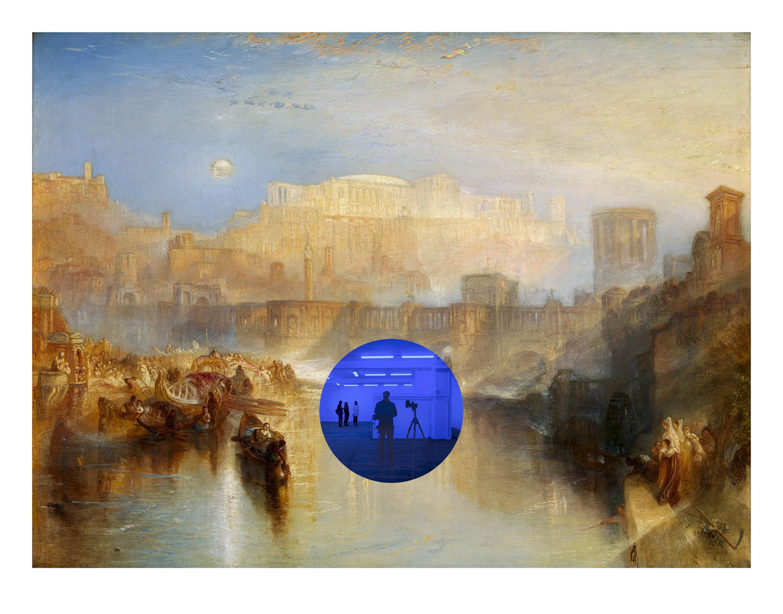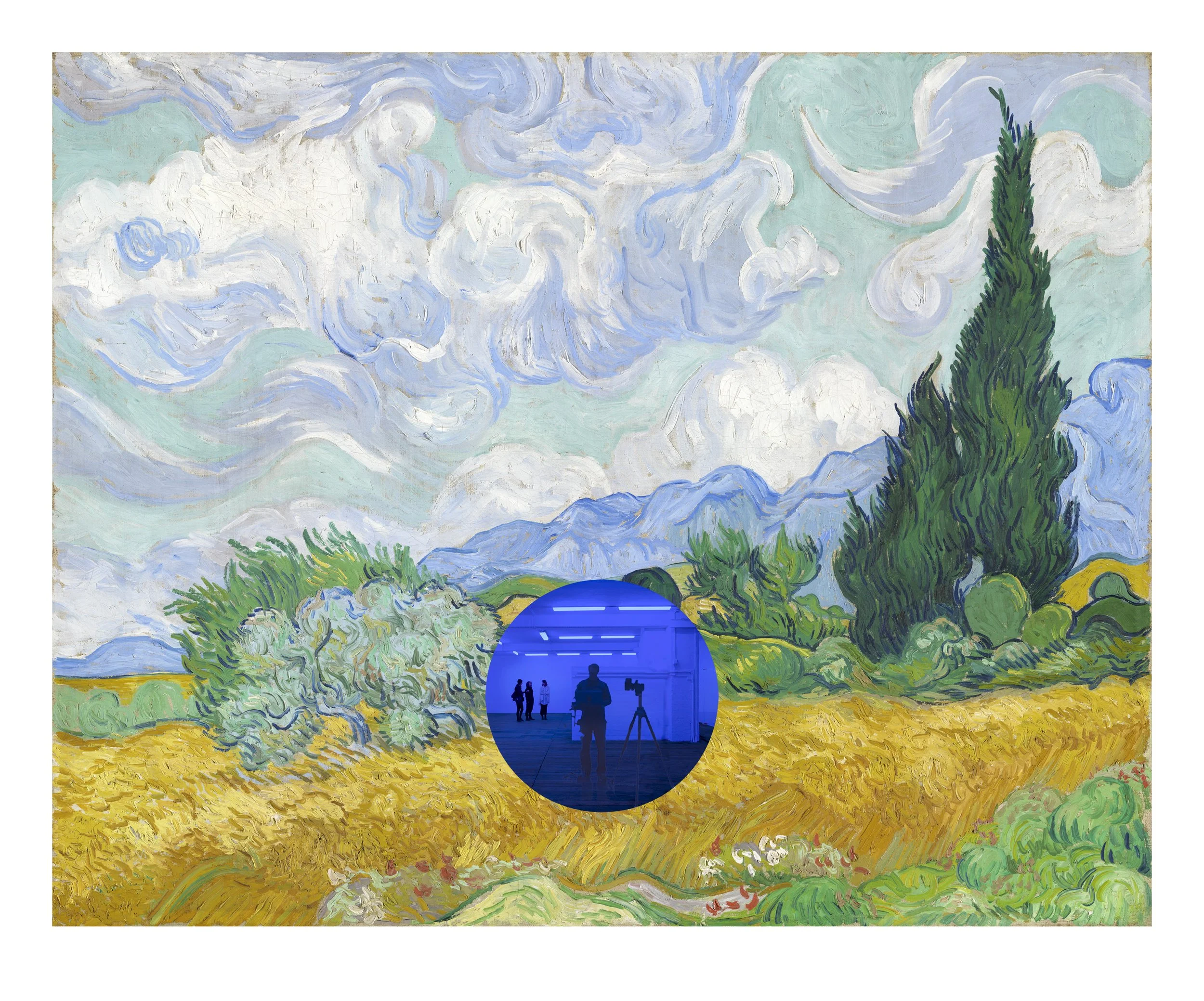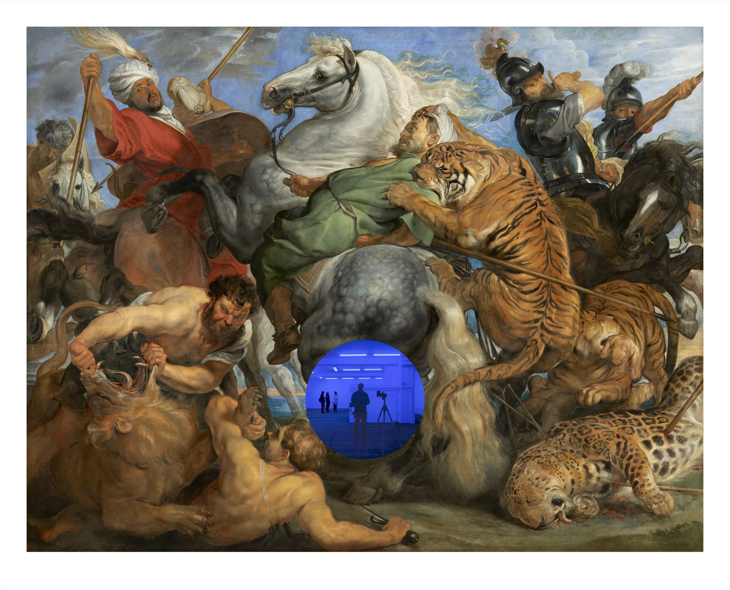 The Gazing Ball series takes as its point of departure the mirrored gazing ball, a popular yard ornament commonly found in the area around the artist’s childhood home in central Pennsylvania. For these editioned Gazing Ball works, Koons worked with the research lab at Corning to develop a custom-poured, optically perfect, one-millimeter thick circle of mirrored cobalt blue glass that is paired with a masterpiece from art history. This juxtaposition of art historical reference with the viewer’s reflection invites a dialogue about the meaning of time and how we transcend it.