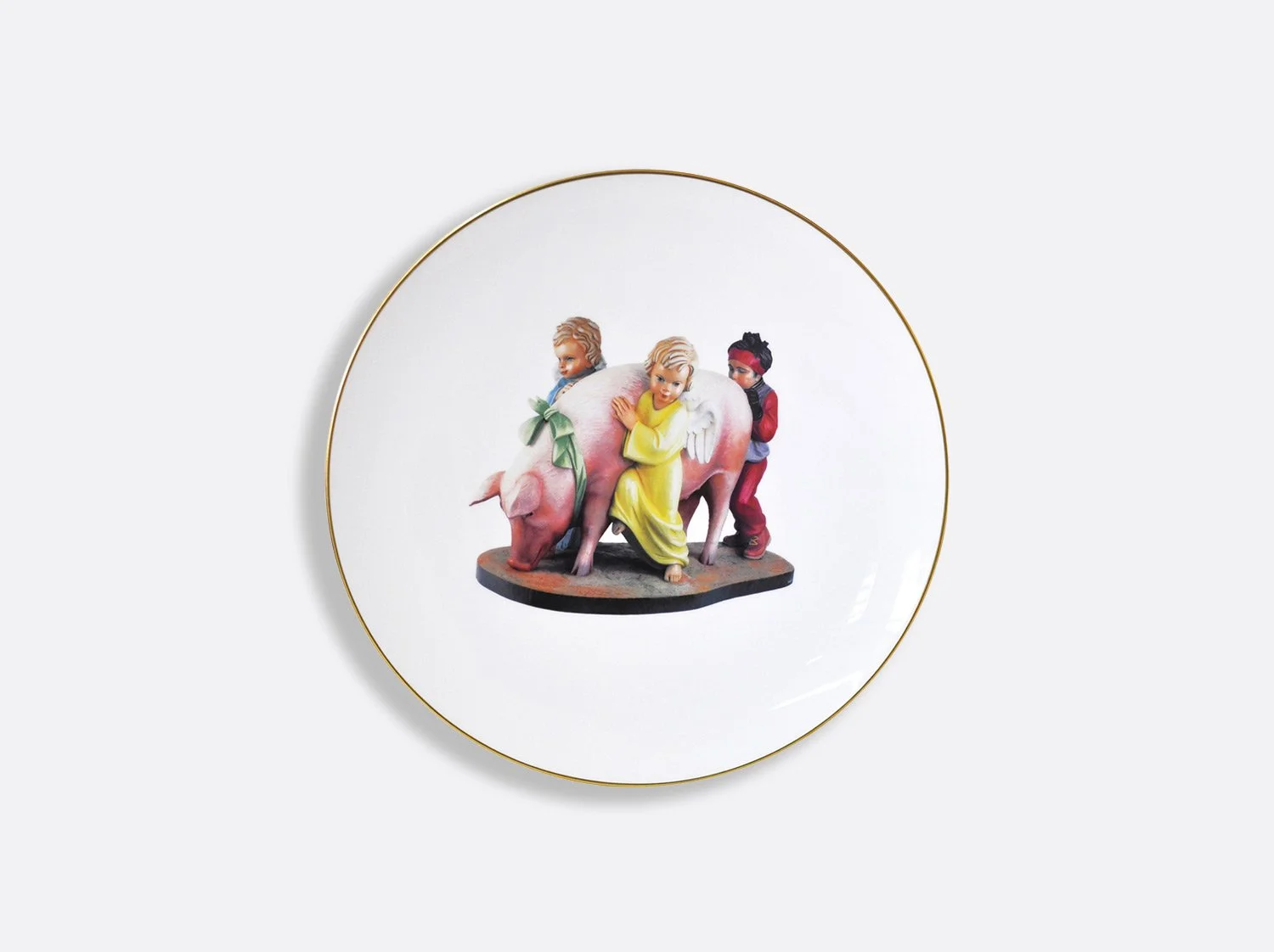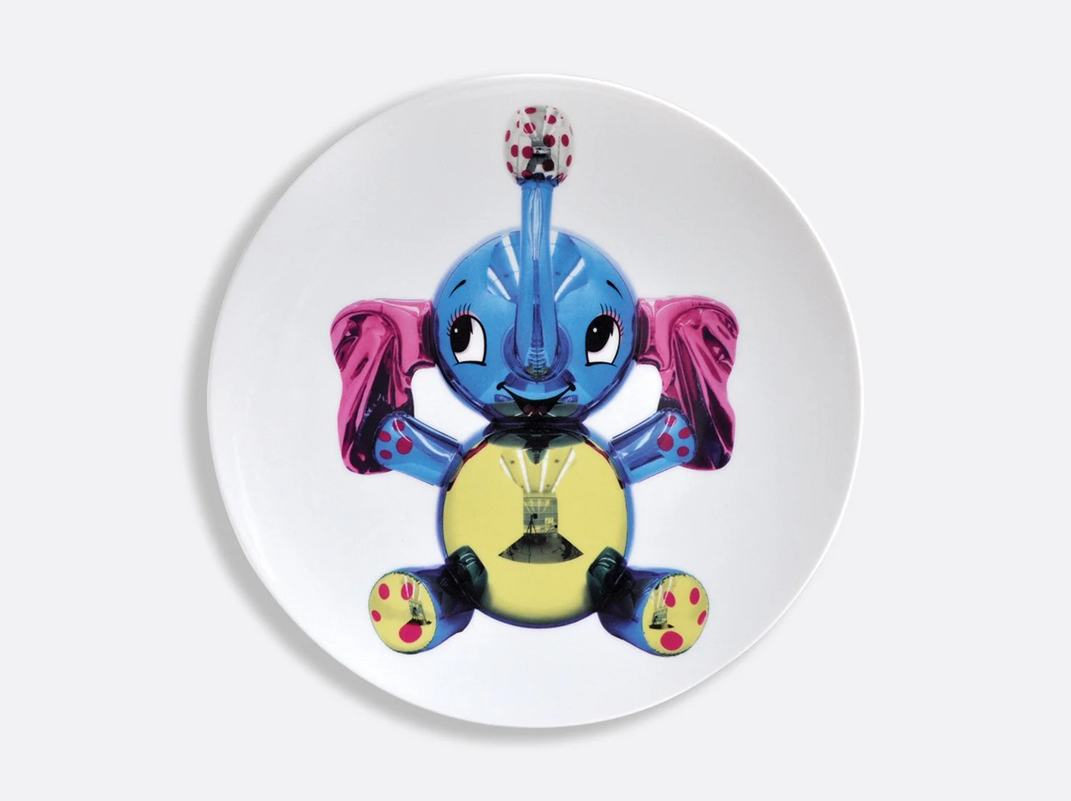 An inflatable elephant was one of the first inflatables Jeff Koons worked with when he first moved to New York as a young artist in the late Seventies. In 2003, Koons referenced the inflatable in his sculpture, Elephant, that is depicted on this limited edition Bernardaud plate.